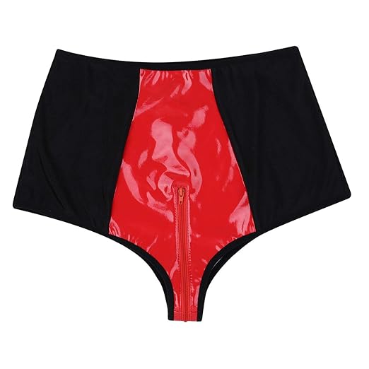 Amazon Com Feeshow Women S Shiny Metallic Zipper Up Rave Booty