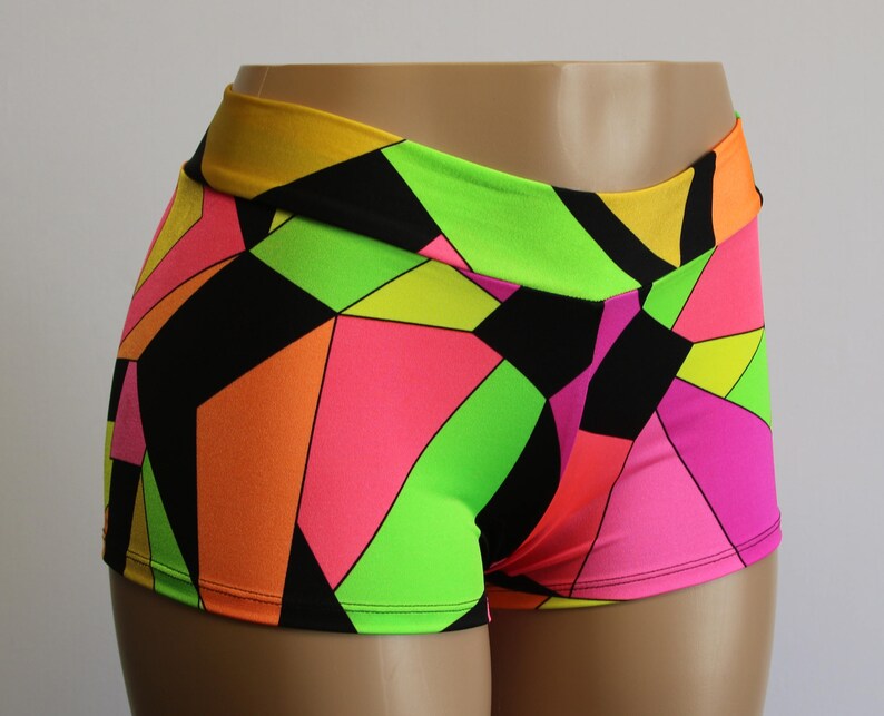 Geometrics Neon Spandex Booty Shorts Child Adult Plus Etsy