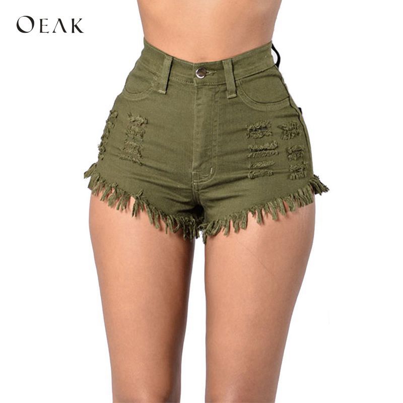 2019 Oeak Denim Shorts Women 2018 Fashion Tassel Ripped High Waist