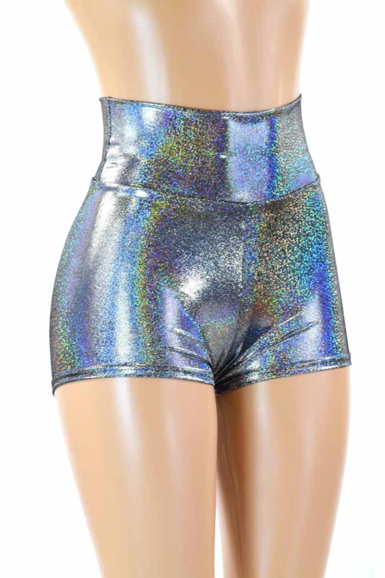 High Waist Silver Metallic Holographic Spandex Booty Shorts Etsy