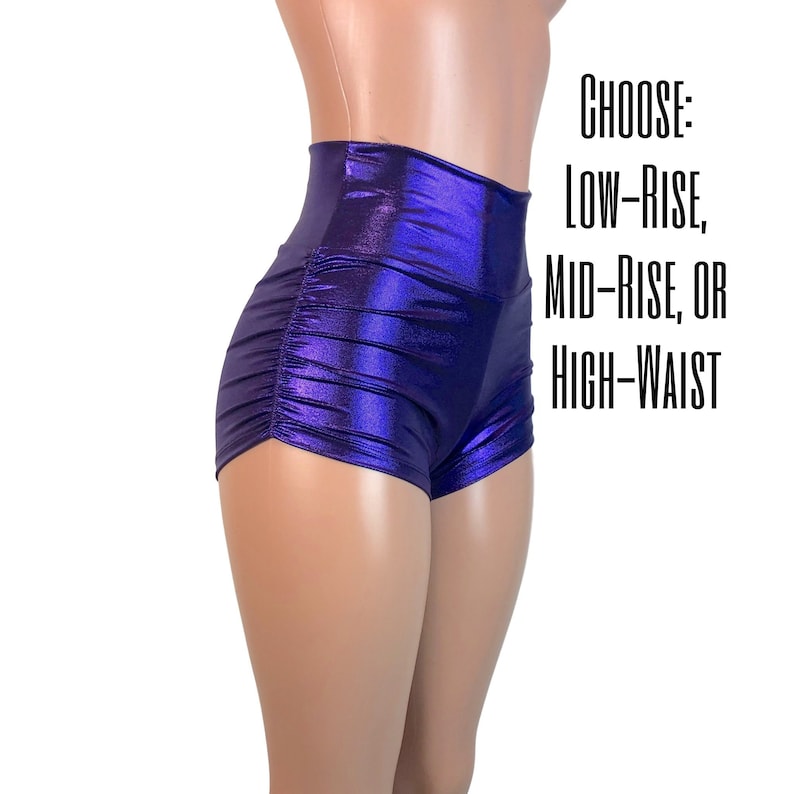 Ruched High Waist Shorts Purple Mystique Metallic Booty Etsy