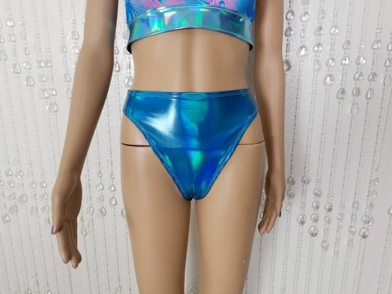 Holographic Turquoise High Waisted Booty Shorts Blue High Cut Etsy