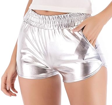 Women S Shiny Shorts Dance Shorts Wet Look Booty Shorts Gold Silver